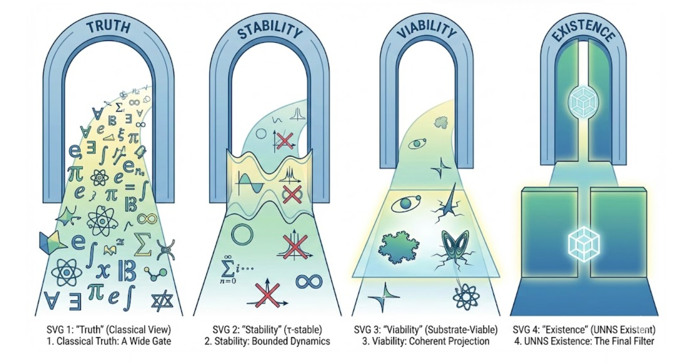 This article formalizes the four categories that emerge from this approach: true, stable, viable, and existent. These are not synonyms; they represent different layers of reality in the UNNS worldview.