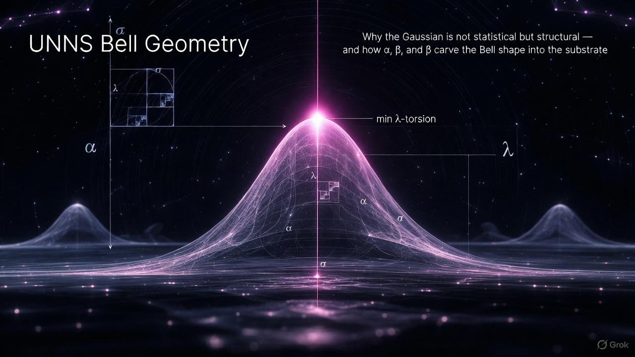 Why the Gaussian is not statistical but structural — and how Φ, Ψ, and τ carve the Bell shape into the substrate.