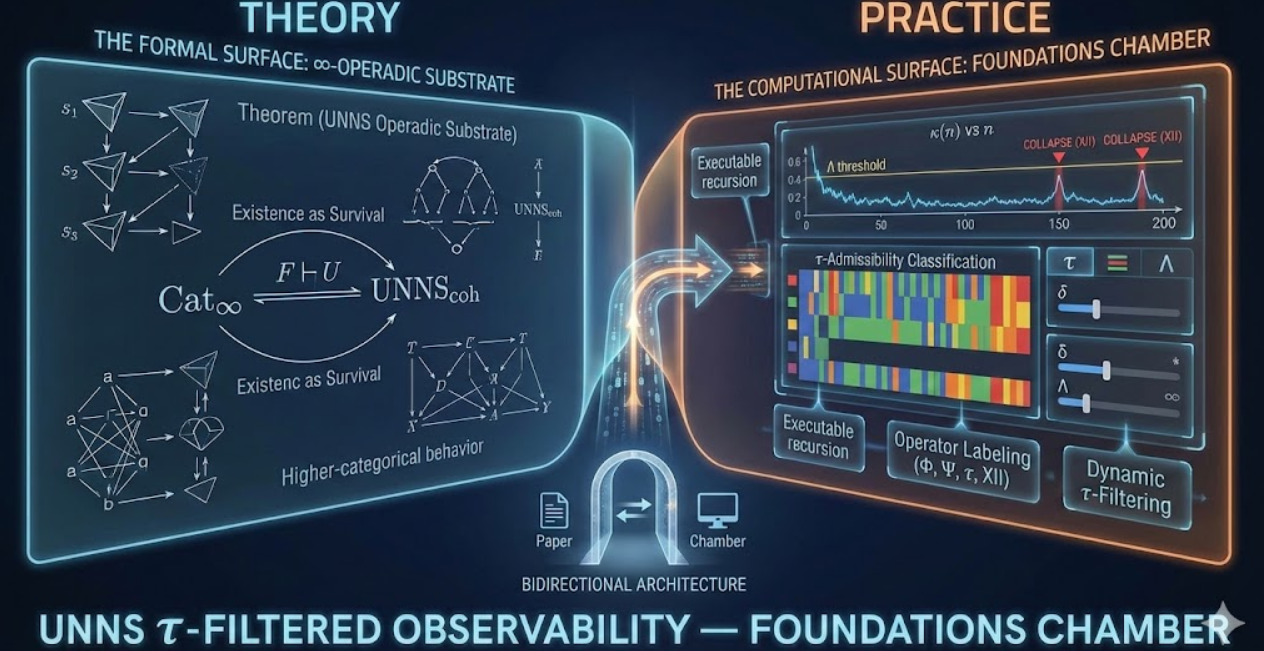 The UNNS τ-Filtered Observability — Foundations Chamber is not a visualization tool, nor a simulation in the conventional sense. It is an executable instrument designed to extract structural invariants from recursive dynamics under observability constraints.